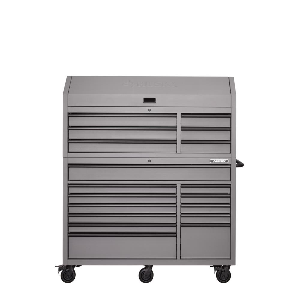 Oh Gott, 56. W 18-DRAWER COMBINATION TOOL CHEST UND CABINET SET, MATTE GRAY
