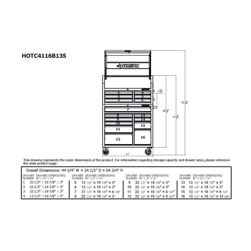 41 IN. X 24.5 IN D 16-DRAWER GLOSS BLACK TOOL CHEST UND CABINET COMBO